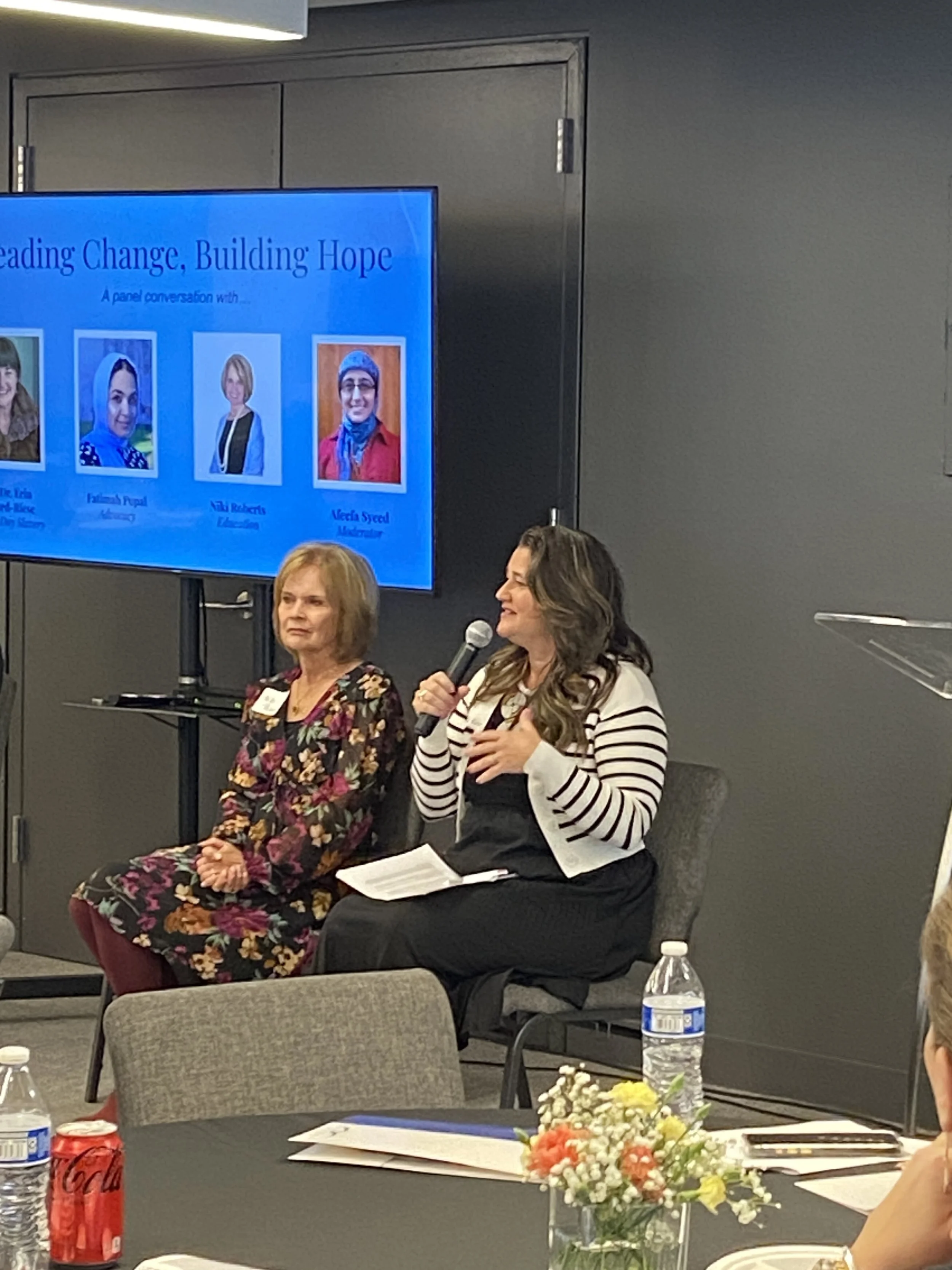 A panel featuring Rev. Dr. Erin Clifford-Riese, Fatimah Popal, and Niki Roberts, and moderated by Afeefa Syeed, discussed their work in each of these prominent areas and how women on the frontlines are leading change.