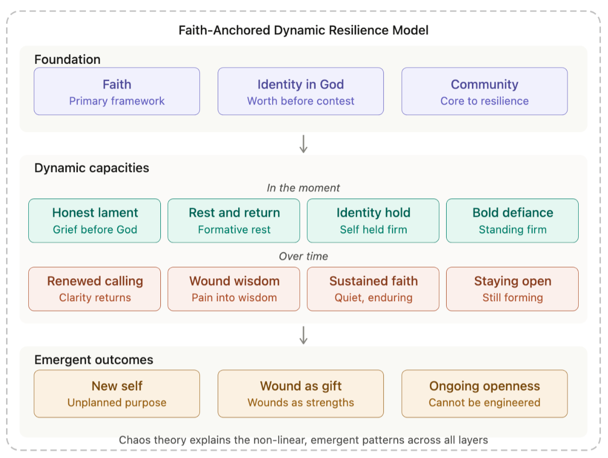 What the research adds to this definition is both confirmation and a challenge: confirmation that faith, community, and non-linear development are empirically recognized as vital to resilience. It also challenges the idea that the content of faith matters, that institutional religion can either undermine or support resilience, that most measurement tools are inadequate in capturing what these women have demonstrated, and that while the chaos theory layer is structurally illuminating, it remains an analogy rather than conclusive proof.